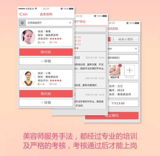 4、您理解并同意,金屋美嬌僅提供美容師的預(yù)約服務(wù),對于服務(wù)的最終交易與否,由您自行判斷,且審慎交易。美容師的信譽、口碑,售后服務(wù),都是您要關(guān)注的地方。